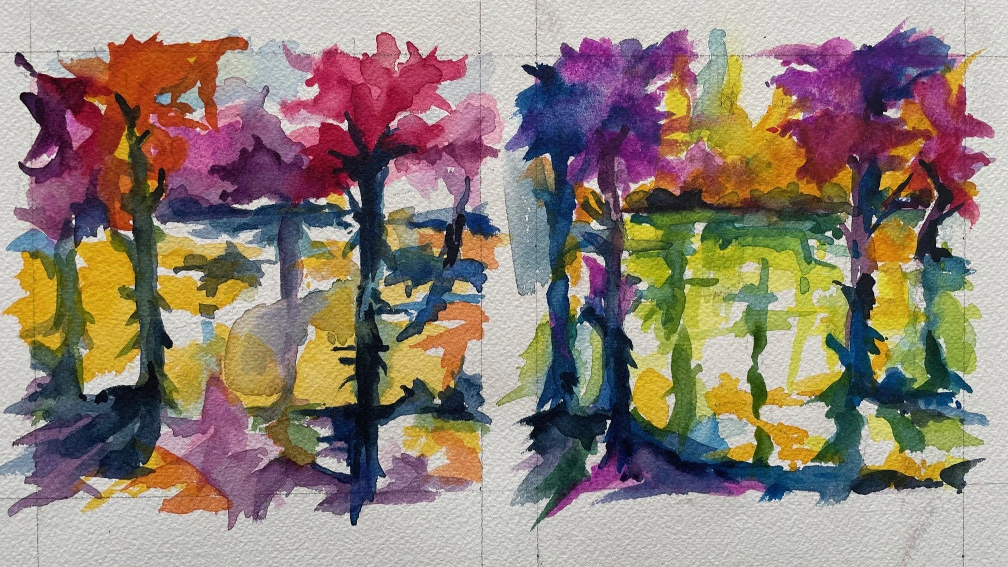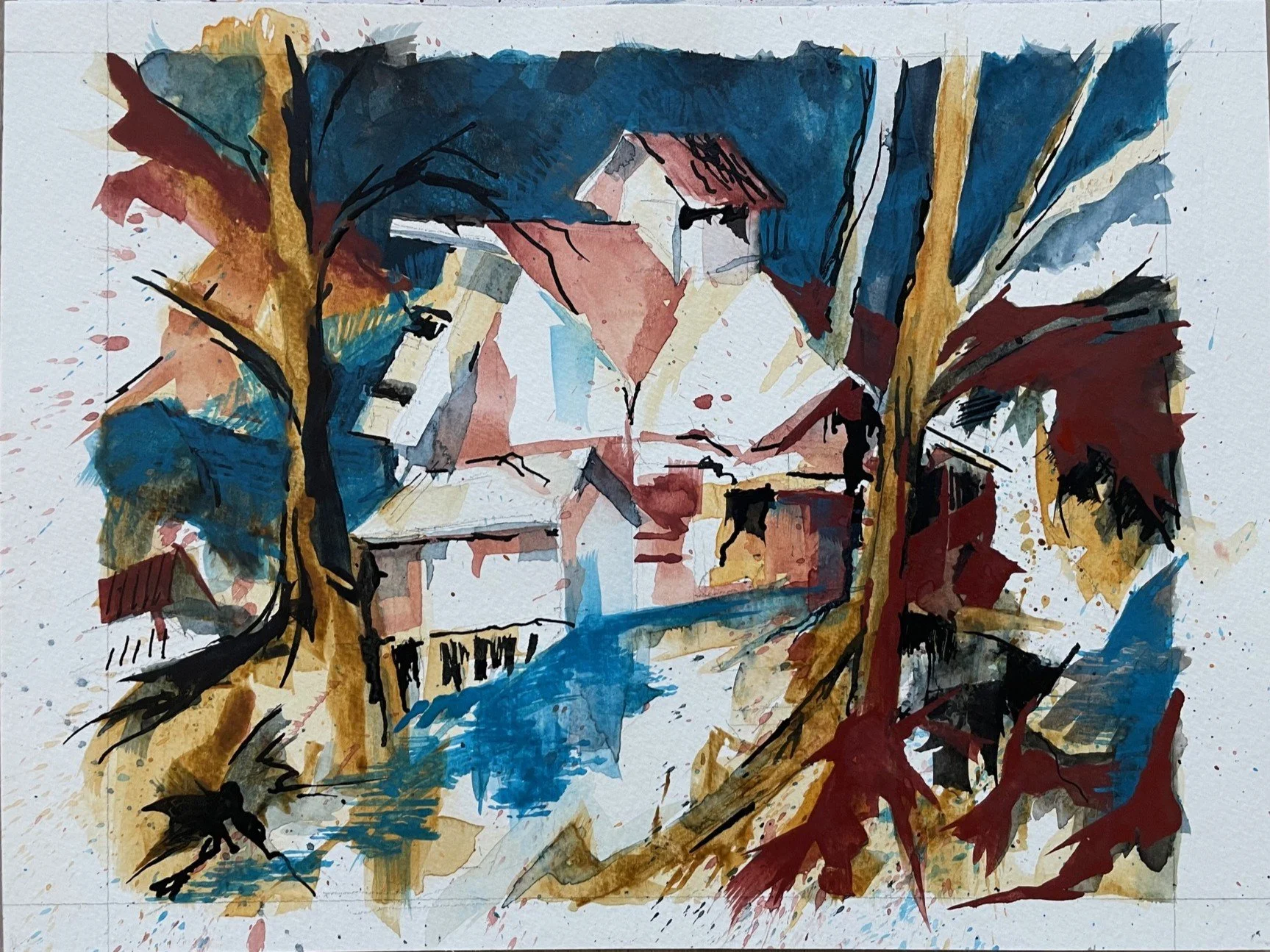 HOUSES FRAMED BY TALL TREES