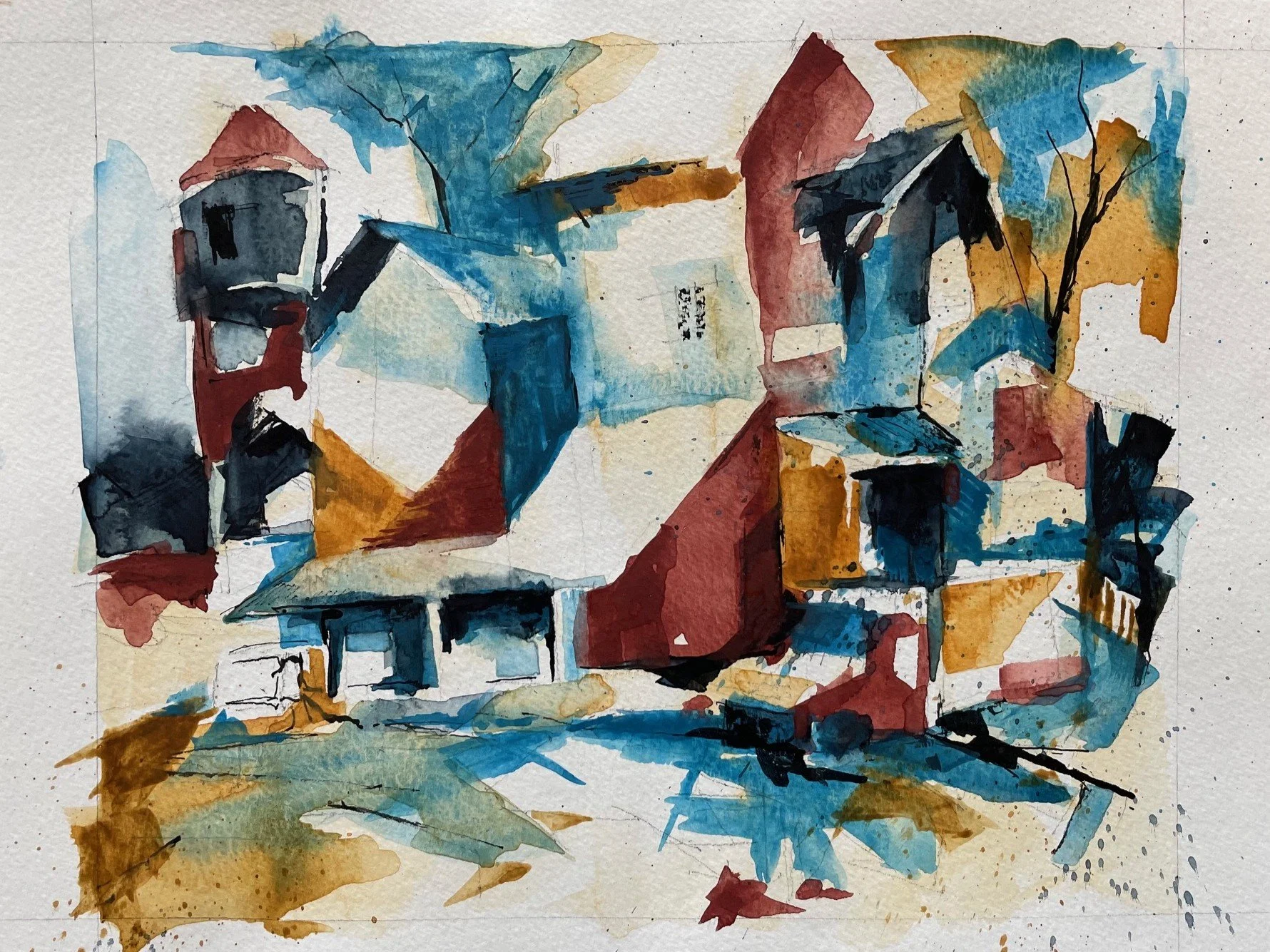 CLUSTERED HOUSES WITH BLUE SKY